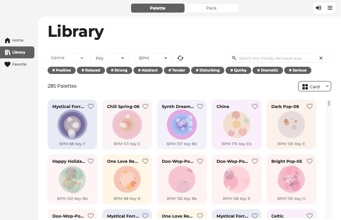 音频文件时,Melody Flip 会自动分析音乐的“DNA”,即音乐结构,包括结构、BPM、节拍位置、调性、和弦进行、流派和情绪。然后,它会基于一个包含约 300 个创意调色板的音色库进行比对,每个调色板代表一种不同的音乐风格或音调方向,并由此生成旋律灵感。这些灵感仅供参考,你可以自由选择、修改、彻底调整,或者将其作为创作的起点——你对软件的依赖程度完全取决于你自己。