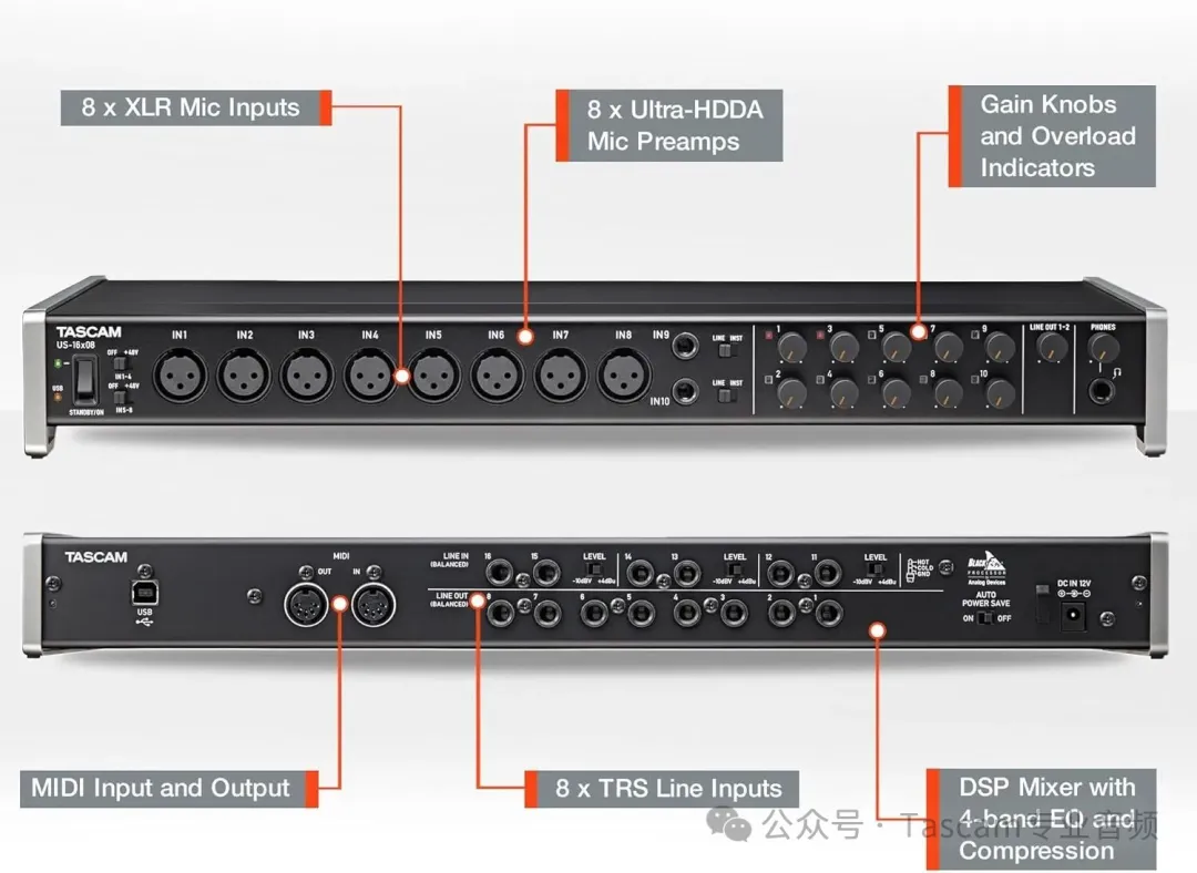 一、TASCAM US‑16X8 硬件核心功能