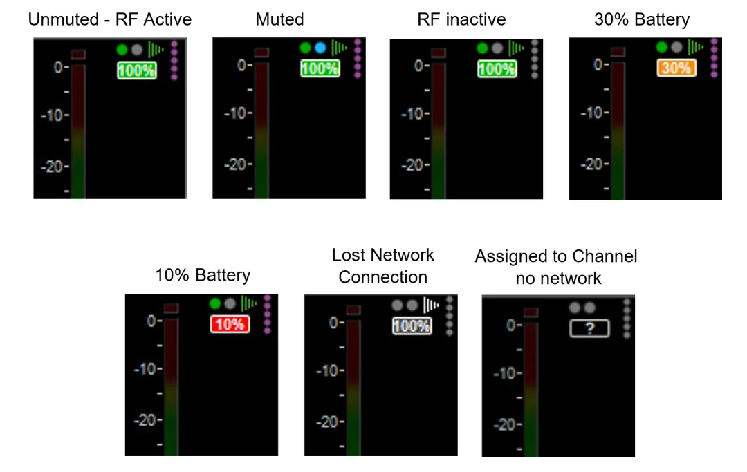 音频I/O界面中,用户可将Astral设备的射频通道分配至项目中的接口。若将这些接口路由至通道,Astral接收器的数据——包括电池电量、射频信号质量、NexLink信号强度、开关状态及静音状态——将实时显示在通道顶部。