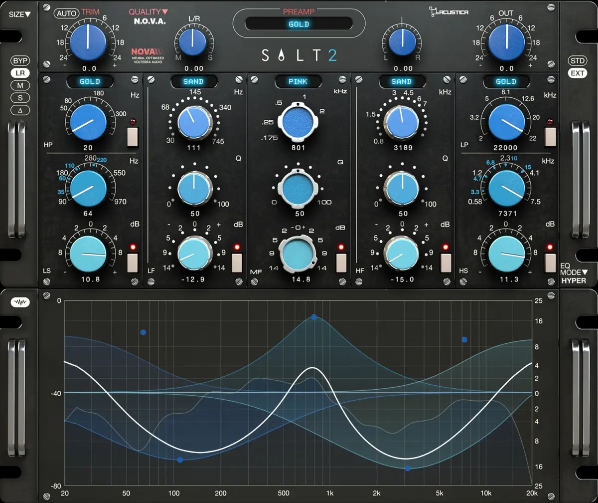 Acustica Audio 发布 SALT 2,一款全新的混音均衡器插件回归,该版本采用了 NOVA(Neural Optimized Volterra Audio) 技术和,并重新构建了工作流程,旨在将三种标志性的模拟均衡器风格融入到一个灵活、现代的集成环境中中。