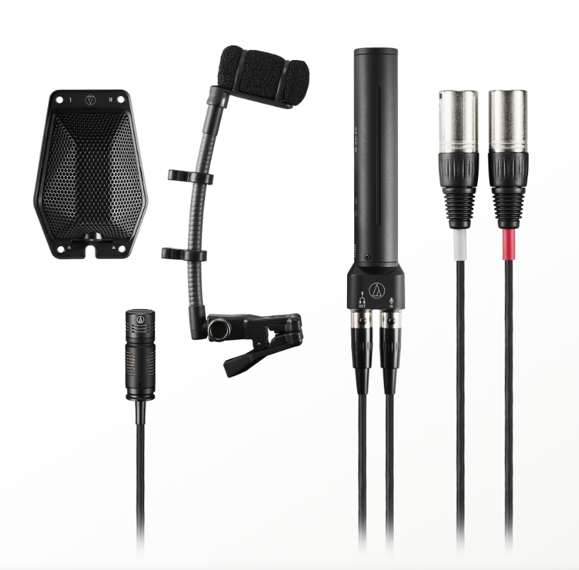 包含一条 36 厘米(14.2 英寸)长的 TA5F 至双 XLR3-M 立体声输出线缆、AT8418 泡沫防风罩以及保护性便携箱